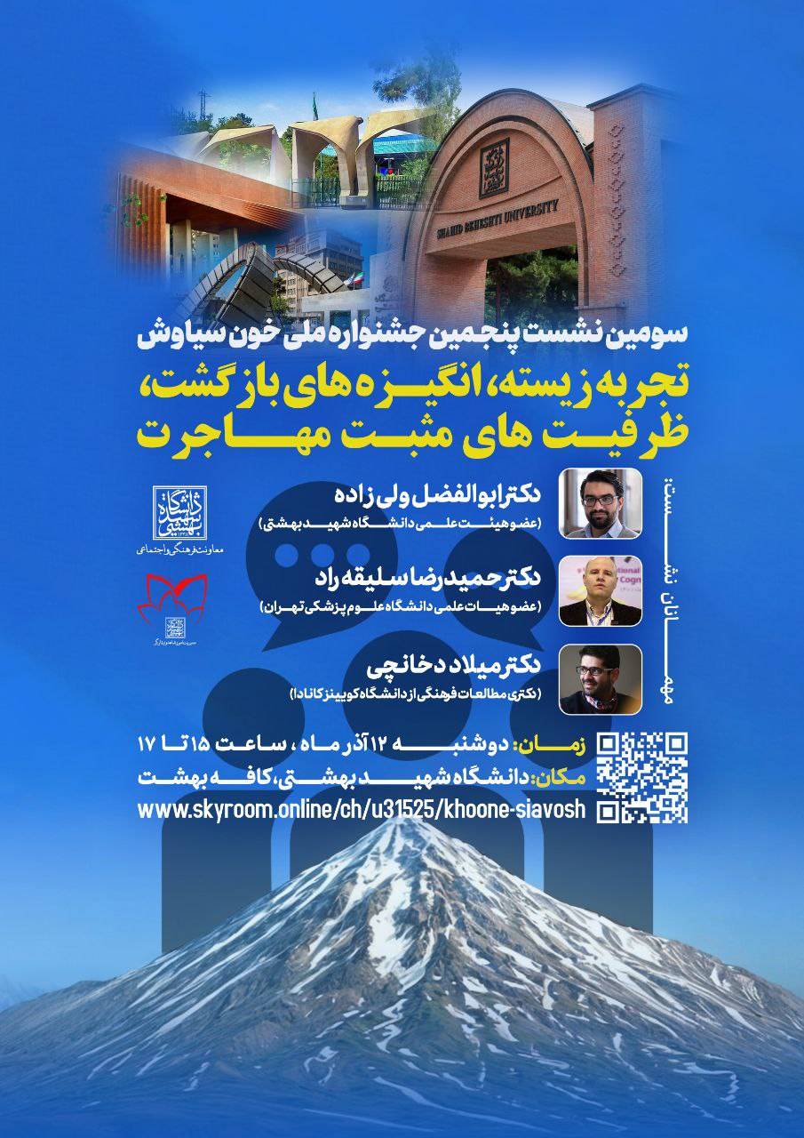 سومین نشست از سلسله نشست های پنجمین جشنواره خون سیاوش با موضوع تجربه زیسته، انگیزه های بازگشت،ظرفیت های مثبت مهاجرت