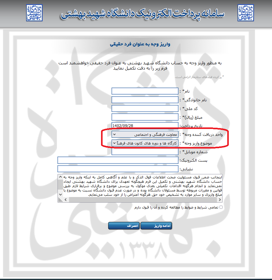 دانشجویانی که در مرحله اول درخواست بازپرداخت وجه را نداده اند و قصد شرکت در جشن شهریورماه ۱۴۰۳ را ندارند اطلاعات خود را در فرم زیر را تکمیل نمایند. در ورود اطلاعات دقت لازم را داشته باشید.