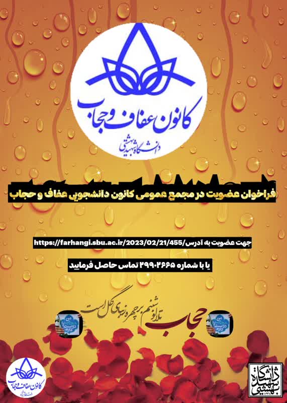 علاقه مندان به فعالیت در کانون عفاف و حجاب دانشگاه شهید بهشتی، جهت عضویت در کانون عفاف و حجاب می توانند از طریق این فرم یا تماس با شماره 29902665- 021 ثبت نام نمایند.