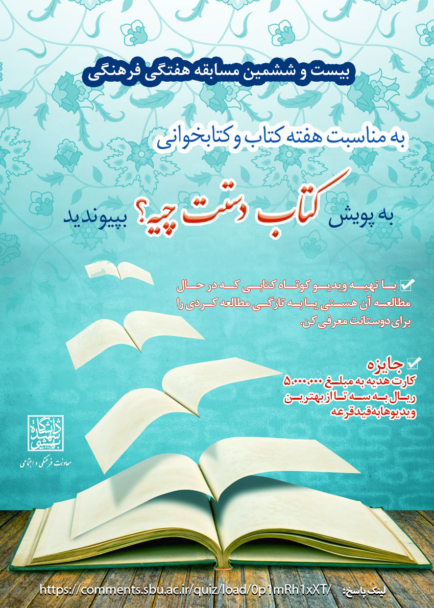 با تهیه ویدیو کوتاه کتابی که در حال مطالعه آن هستی یا به تازگی مطالعه کردی را برای دوستانت معرفی کن.