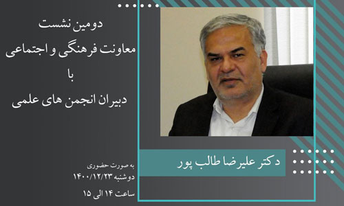 دومین جلسه نشست تعامل معاونت فرهنگی و اجتماعی با دبیران انجمنها با حضور دکتر علیرضا طالبپور و دکتر سید مهدی طباطبائی از ساعت 14الی 15:30 در سالن شهدای گمنام معاونت فرهنگی برگزار گردید.