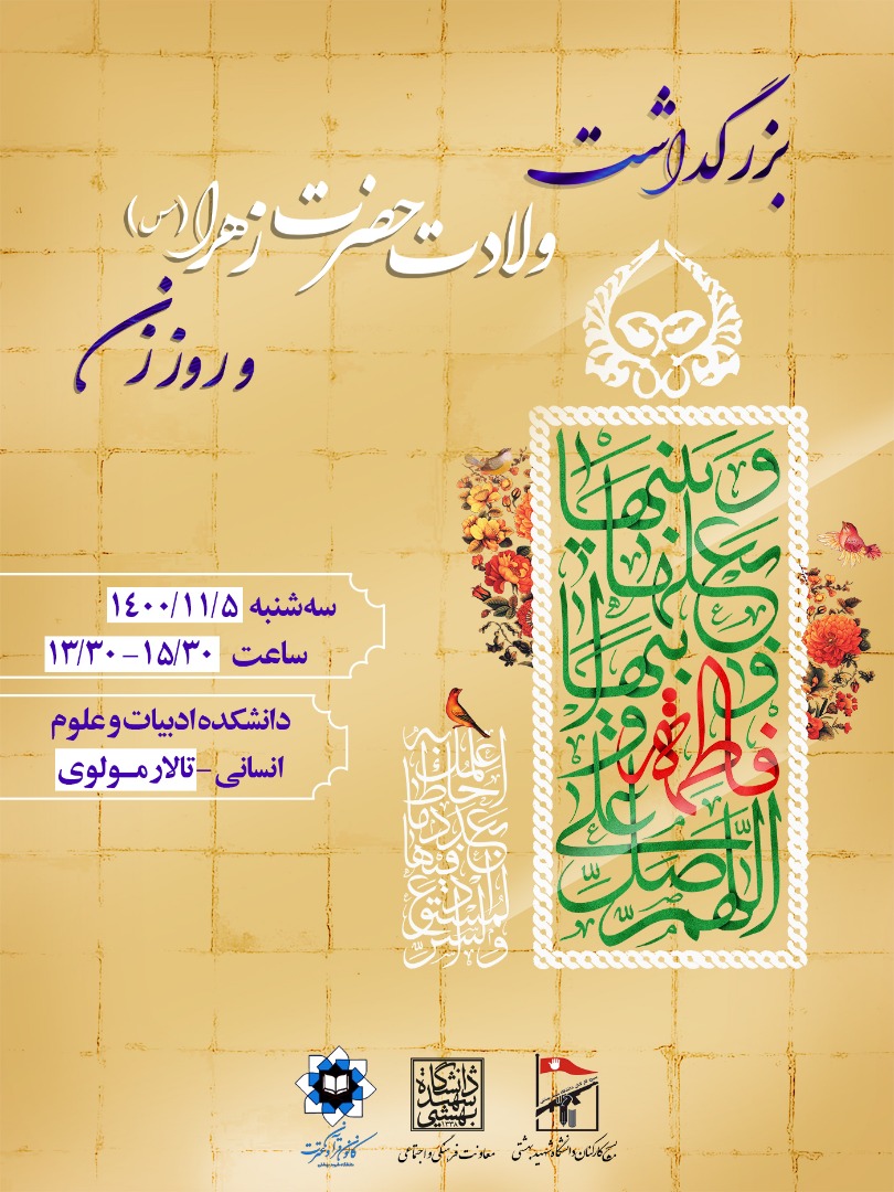 مراسم بزرگداشت ولادت حضرت زهرا (س) و روز زن در تاریخ 5/11/1400 از ساعت 13:30 الی 15:30 در تالار مولوی دانشکده ادبیات و علوم انسانی برگزار میشود.