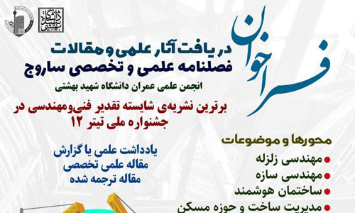 فراخوان دریافت آثار علمی و مقالات در نشریه علمی-تخصصی ساروج در اسفند ماه ۱۴۰۰ منتشر شد.