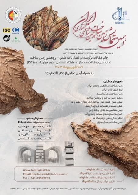 به گزارش دانشکده عمران آب ، محیط زیست دهمین کنفرانس بینالمللی زمین ساخت و زمین شناسی ساختاری ایران در تاریخ 6 و 7 شهریور 1403 به میزبانی دانشگاه تبریز برگزار خواهد شد.