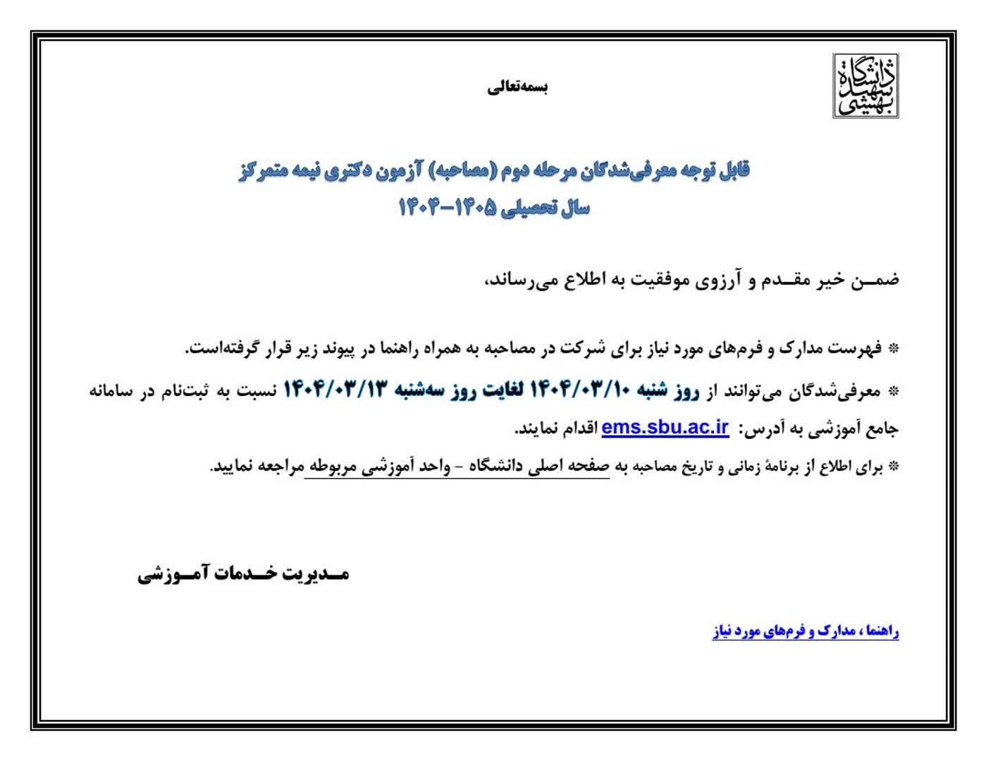 مدارک مورد نیاز مصاحبه دکتری