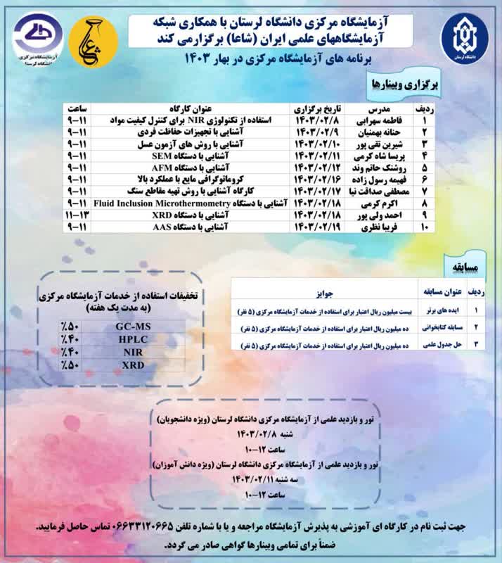جهت شرکت در دوره‌ها و شماره تماس آزمایشگاه مرکزی دانشگاه لرستان: 06633120665