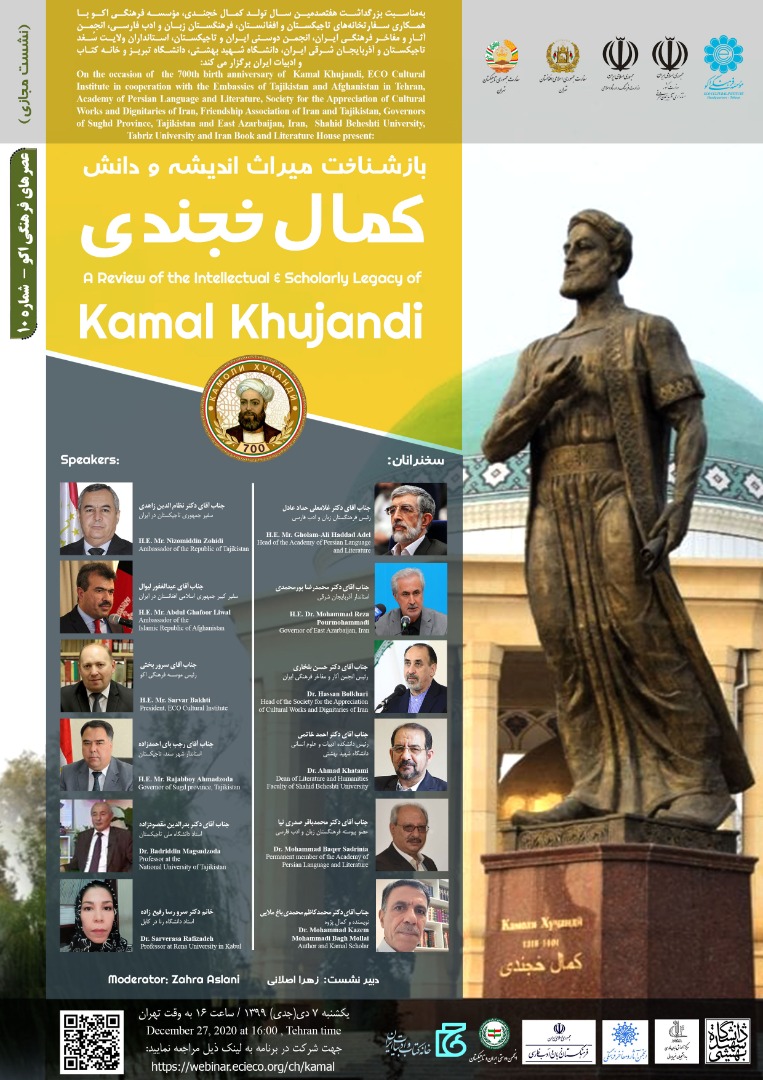 برگزاری نشست بازشناخت میراث اندیشه و دانش کمال خجندی 9139 بازدید print share 07 دی به مناسبت بزرگداشت هفتصدمين سال تولد کمال خجندی، معروف به شیخ کمال از عارفان و شاعران پارسیگوی قرن هشتم هجری،...